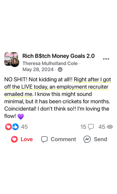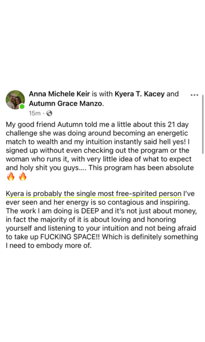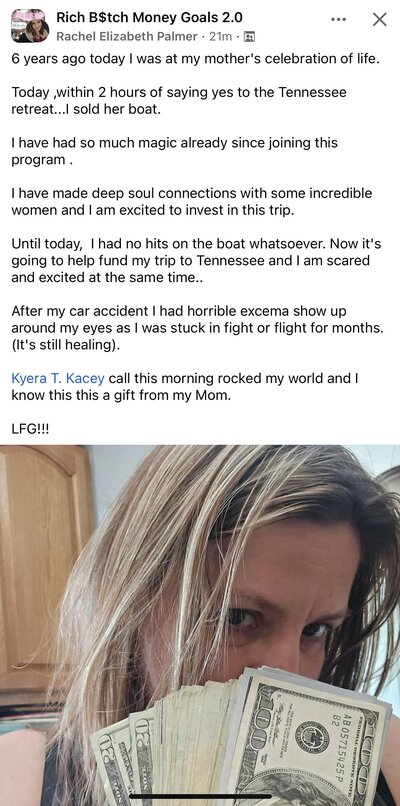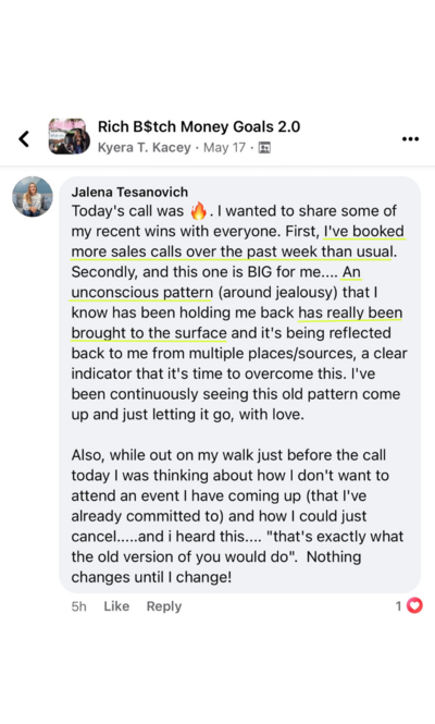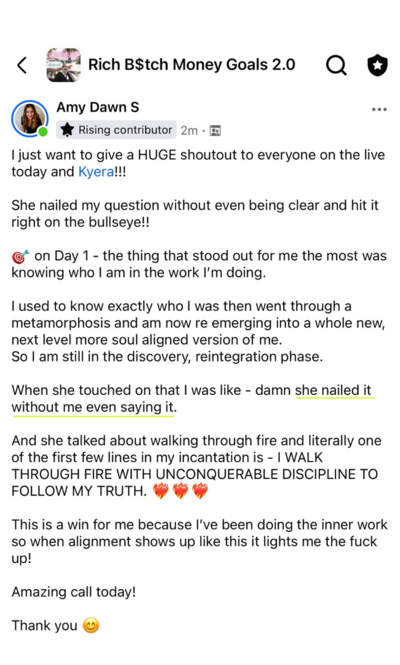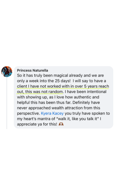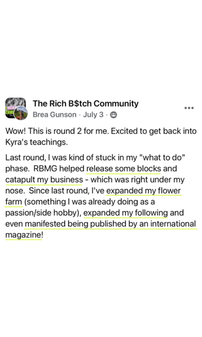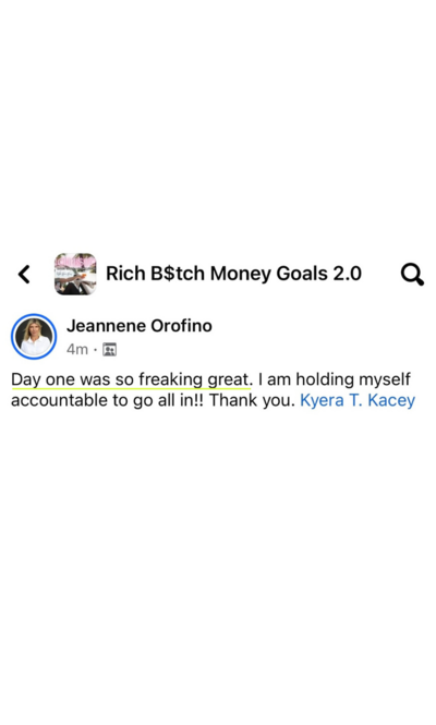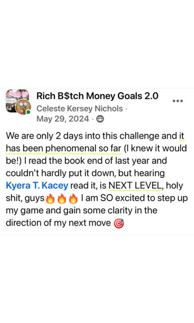 Rich B$tch Money Goals is a 25-day, live, online immersion designed to help you embody the principles from Kyera Kacey’s award-winning, international bestselling book Rich B$tch Money Goals: Becoming the energetic match to wealth.